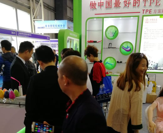 在過去四天的展會中,中塑企業(http://m.2nnn.com.cn 135-1035-6035)的TPE材料備受生活用品、運動器材、公仔玩具、消費電子、電線電纜、成人用品、工具配件、汽車部件、家用電器等行業的的矚目,公司工作人員在3E301號展位上兢兢業業,為前來咨詢的顧客專業講解中塑企業TPE材料的精妙之處,完美呈現了TPE材料的高強度,高回彈性,可注塑加工等特征。同時,本次以綠白為主色調的中塑企業展位設計,成為本屆展會最亮眼的展位之一,綠色環保,高端大氣,時尚簡約,國際范十足,彰顯了中塑企業行業領先的地位,以下是展會現場火爆場面做精彩回顧。