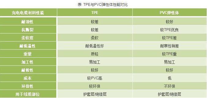 相比較之下,TPE材料則更為環保,安全無毒,而且具有耐低溫、質量輕、易加工、柔軟富有彈性等諸多優良特點。正因如此,目前業界人士對于用TPE取代PVC作為新的充電樁電纜的呼聲也越來越高。而且隨著技術的發展,TPE材料在耐油性上也有了長足發展,TPE復合材料的出現也開始滿足了充電樁對于線纜耐油性和耐水性的要求。